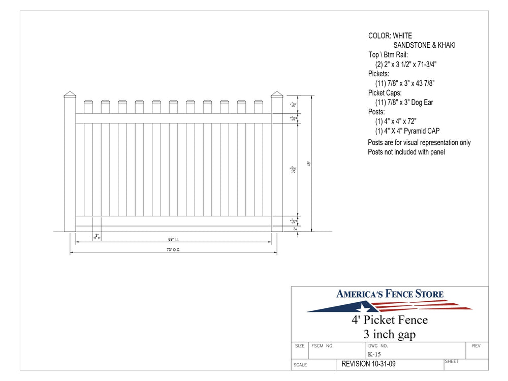 A 4' picket vinyl fence provides a classic yet cordial addition for your yard. The 3" gaps between pickets on this vinyl fence allows for visibility while maintaining a barrier for larger animals and dogs, and also preventing children from straying.
