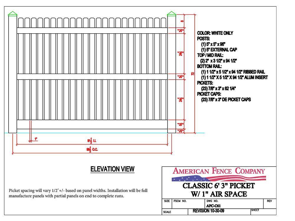 Classic 6' 3" Picket w/1" Air Space, AFC-C61 - White | $455.43 |