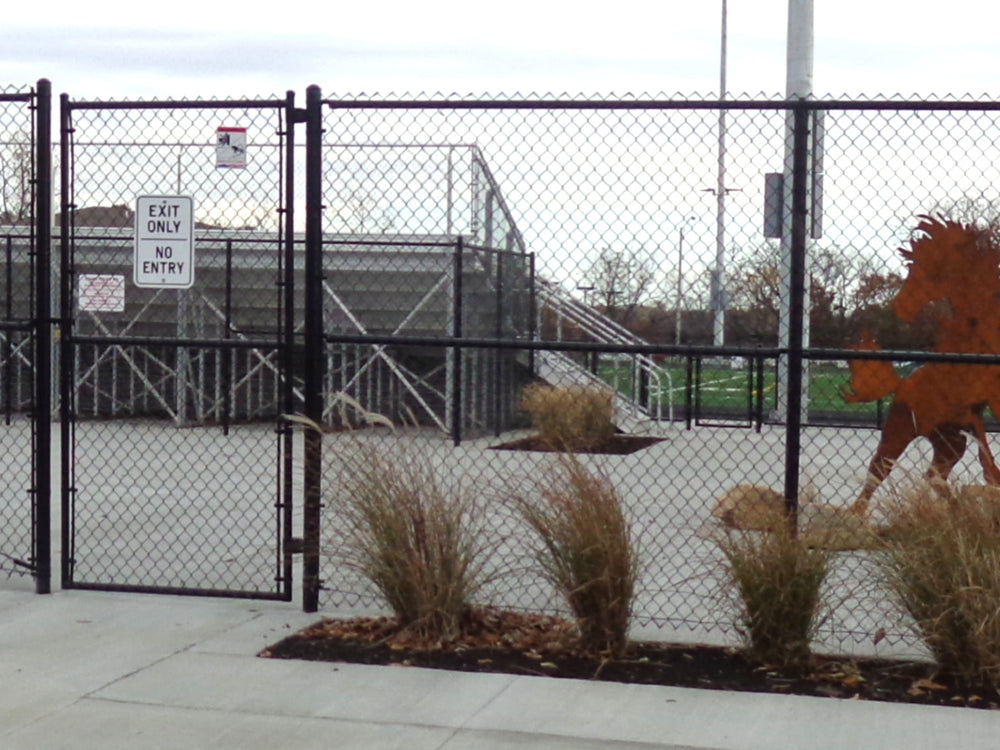 Our commercial colored chain link fence systems use only galvanized chain link fabric, fittings and framework underneath a powder coated finish on the framework and a smooth vinyl finish on the fabric. Using only high strength tubing with a polymer clear coat and heavy gauge chain link fabric, the system is designed to provide years of security while maintaining a unique high profile colored finish. Each system is designed to meet industry standards. Do you want to add screening, have a unique design or anticipate unusual site conditions, please contact us so that we may assist in custom designing your system.
