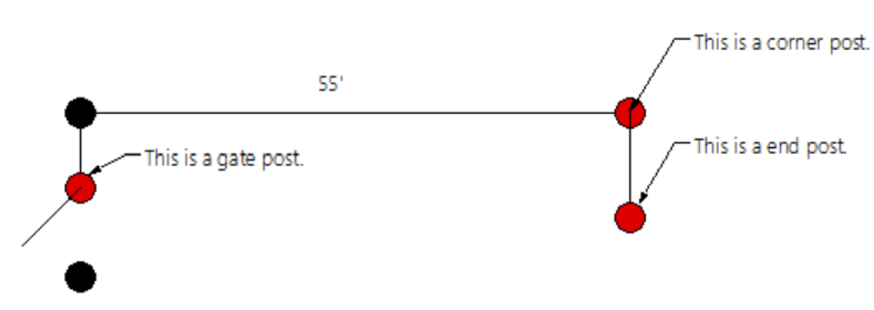 • Layout. A layout is a drawing of your fence that shows all terminate posts, gate openings and fence runs.
